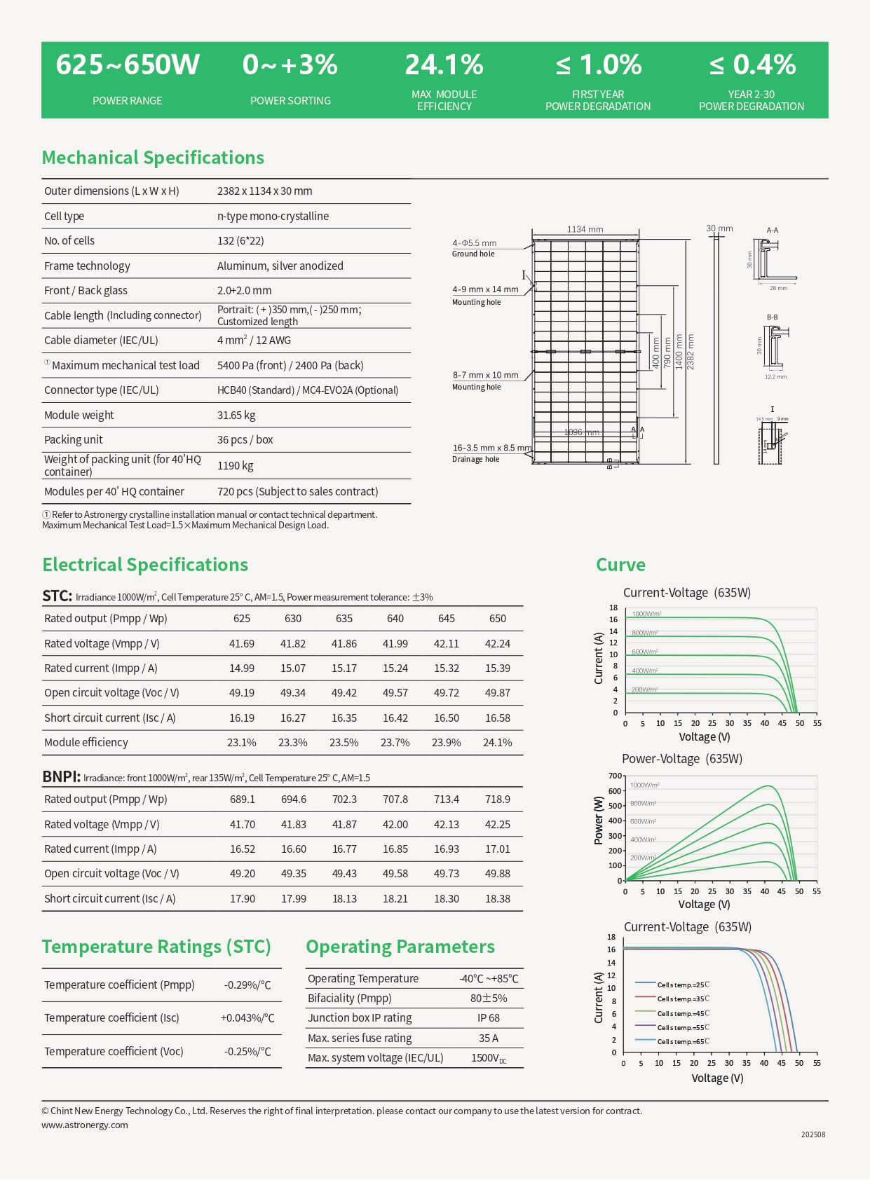 Datasheet pin năng lượng mặt trời Astronergy 620W-625W