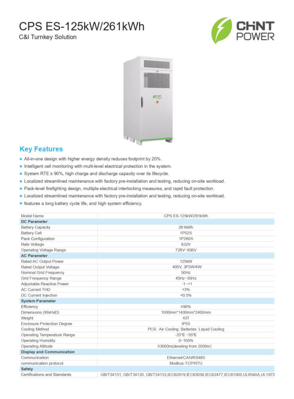 Datasheet CHINT ESS 261kWh CPS ES-125kW/261kWh