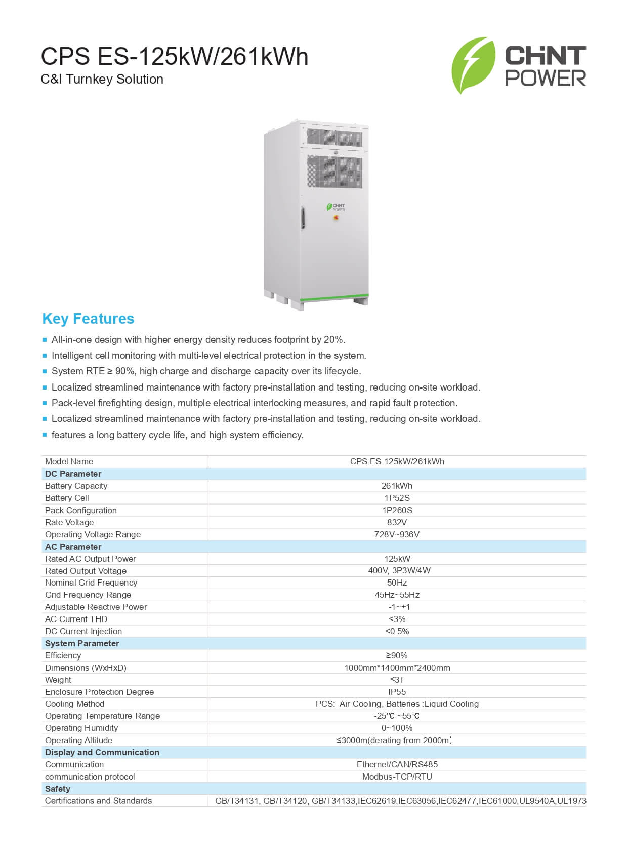 - Datasheet CHINT ESS 125kW/261kWh