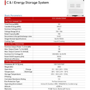 | Thông số Pin lưu trữ | ESS 261kWh/125kW |