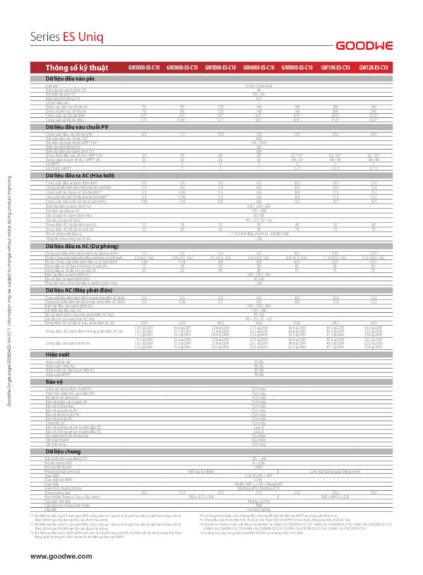 Thông số kỹ thuật biến tần Hybrid GoodWe 6kW ES Uniq