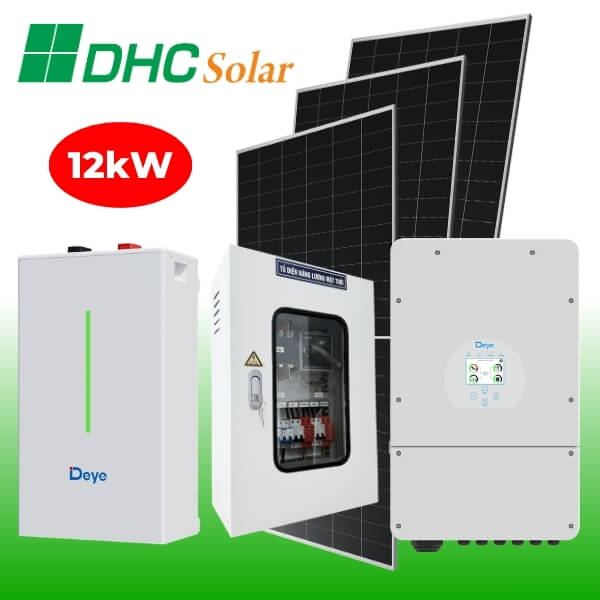 Chi phi lắp hệ thống điện năng lượng mặt trời có lưu trữ (Hybrid) 12kW từ 200 – 250 triệu phụ thuộc vào thương hiệu tấm pin năng lượng mặt trời, Inverter Hybrid, Pin lưu trữ lithium, đặc biệt là công suất lưu trữ 16kWh, 32kWh hoặc lưu trữ cao hơn. Dưới đây là bảng giá lắp đặt trọn gói điện mặt trời 12kw cho gia đình.