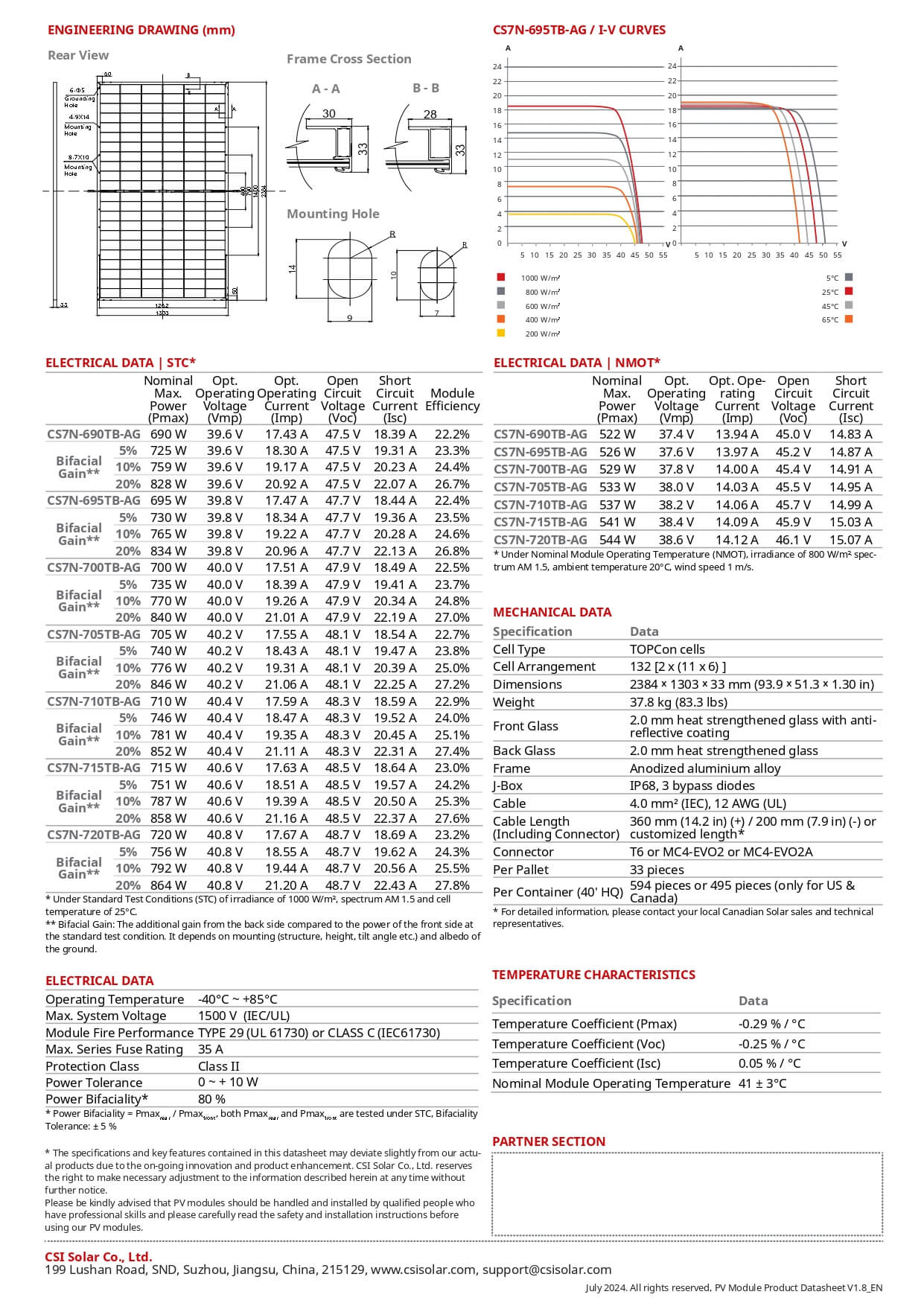 Thông số tấm pin mặt trời Canadian Solar 710W – 715W